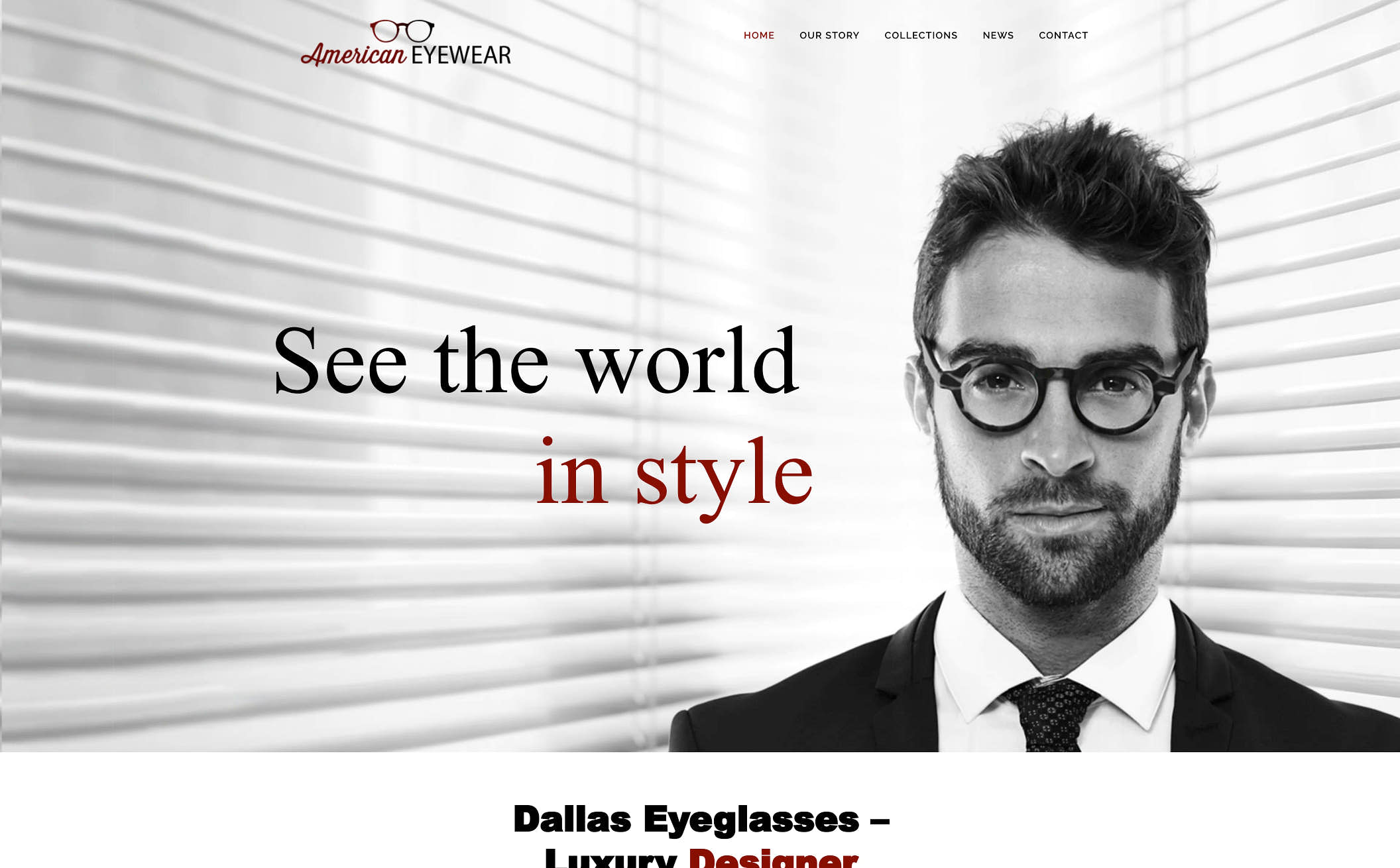 American Eyewear is a Dallas-based optician that has served local customers for more than four decades. They offer designer eyewear and have an in-house lab where they craft lenses for each customer. Their website has a clean and smart design, covering the company's story and listing the vendors from whom they source designer eyewear. Contact details are also provided, along with a page for news. However, the latter contains no content.