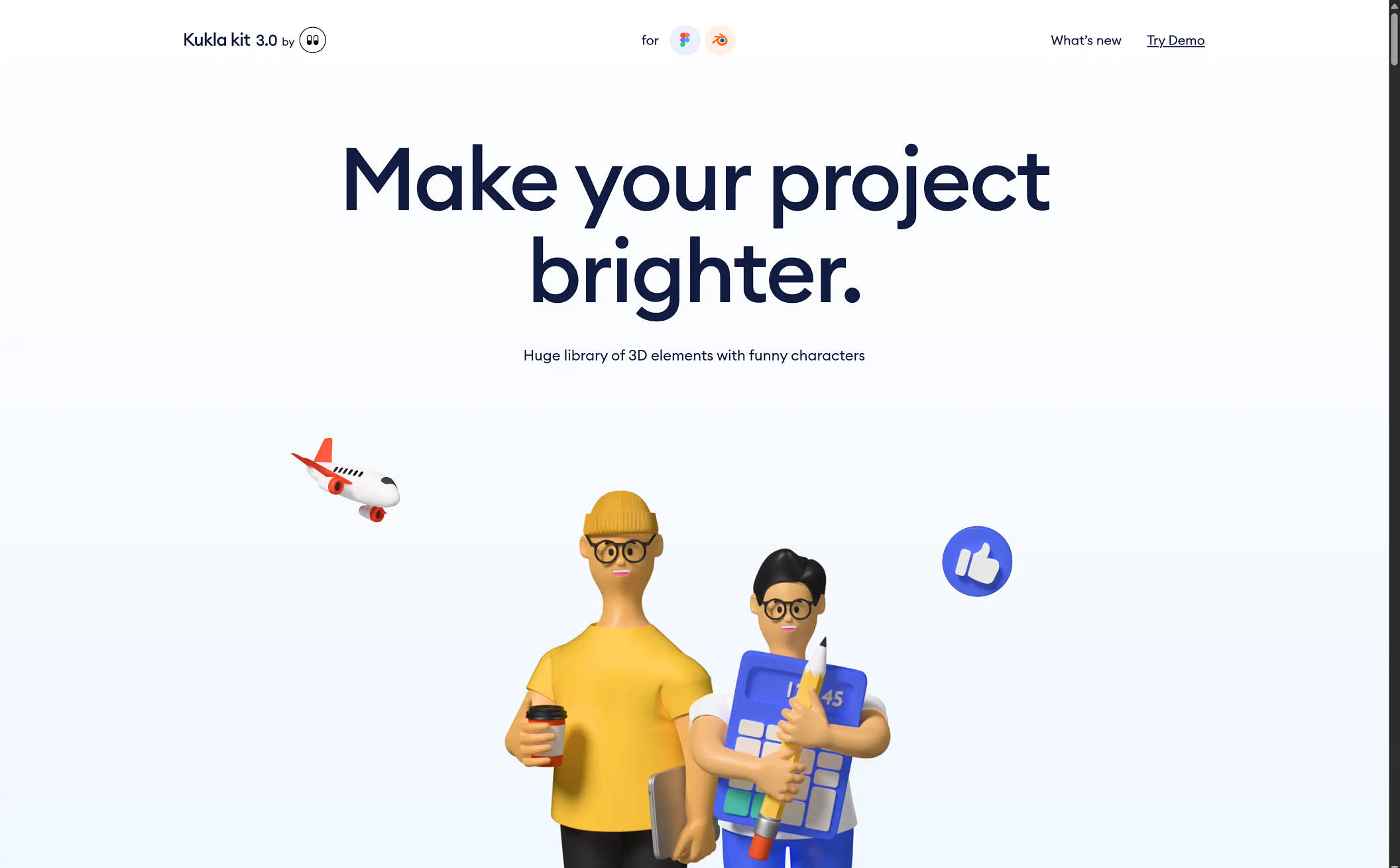 Kukla Kit’s website is like a toy box for designers, filled with colorful 3D characters and fun illustrations. The bright white background makes everything pop, and the interactive demos let you play around. It’s perfect for showing off creative assets in an engaging way.