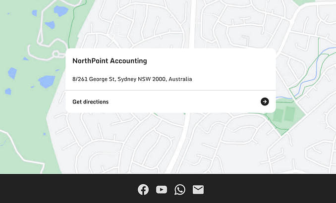 Make it simple for people to find and reach you. This template comes with a built-in location section and "Get directions" button, so clients can easily navigate to your office. You can update your contact details, business hours, and announcements from your phone, ensuring businesses always have the latest information when they need your services.