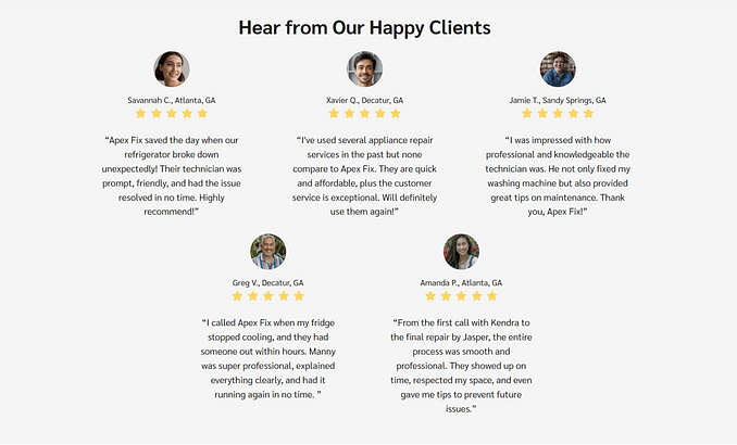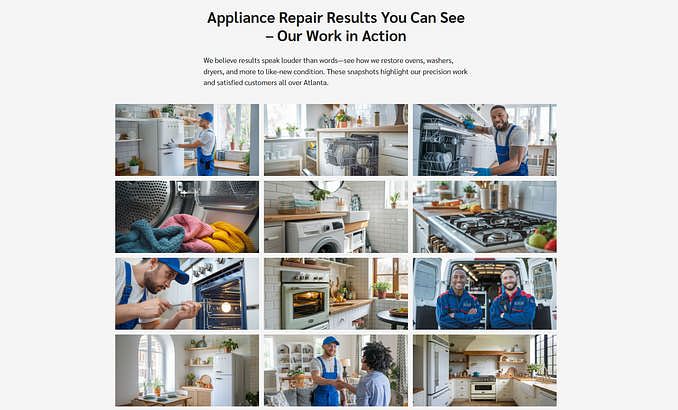 "This site is clean, modern, and feels like it was made for your business — not some generic service. The photo gallery is a smart way to show appliance repair results without saying a word."