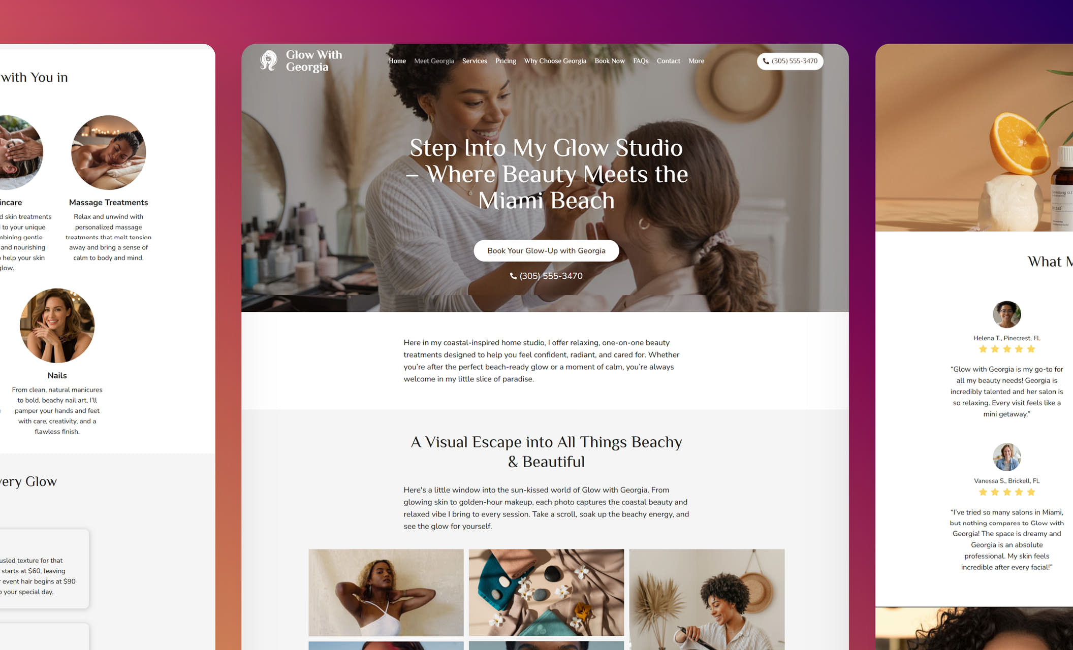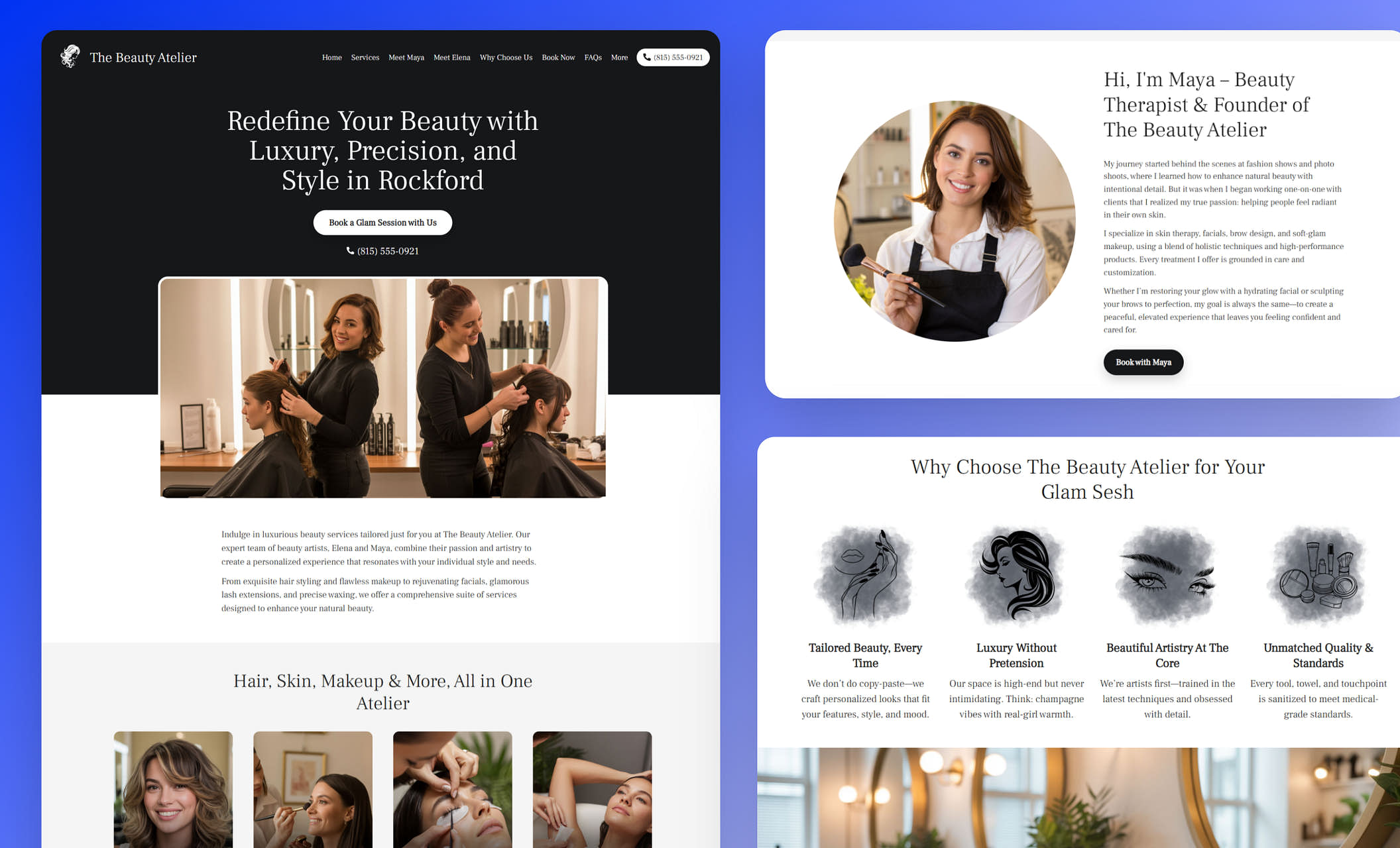 A good mobile beauty website makes it easy for people to find you, trust you, and book you — and this one checks all three. Strong visuals, smart sections, and mobile-friendly forms let you show off your specialties without over-explaining.