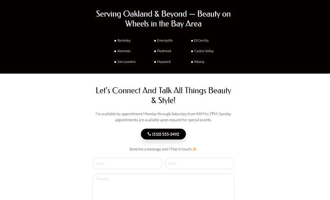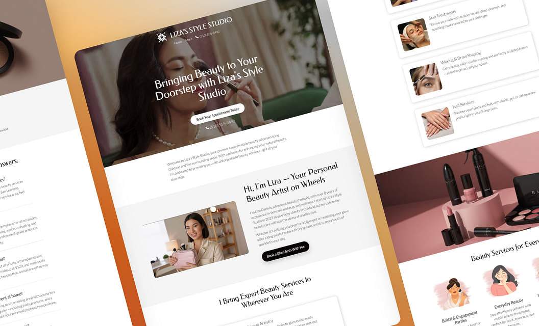 Ready to grow your mobile beauty business without chasing every lead? This warm-toned, clean layout helps you do just that. Customers can scroll through services, see high-res photos, and contact you directly through your site. Zarla’s drag-and-drop editor lets you customize fonts, colors, and content in seconds—no tech skills needed.