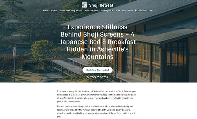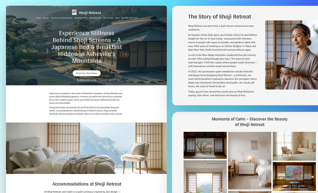 “The peaceful B&B design does all the talking for you. Clean layouts, soft imagery, and easy booking make this perfect for quiet escapes.”
