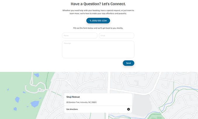 You can use Zarla’s editor to customize everything from photos to fonts without touching a single line of code. Built-in SEO helps your site appear in local searches, while optional integration with your favorite scheduling app adds convenience for both you and your guests. The result? A clean, quiet website that speaks volumes about your retreat.