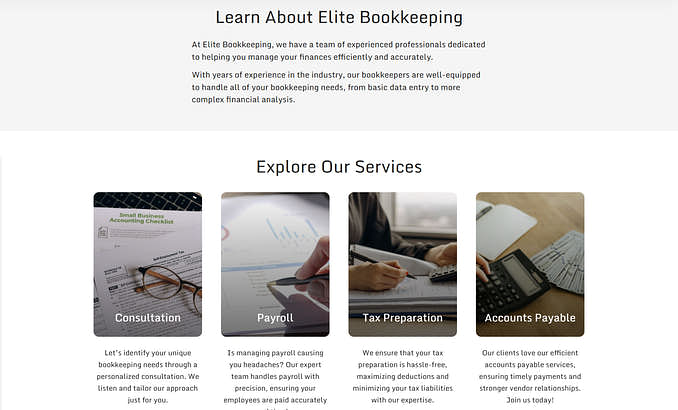 Transform your online presence with a template that turns numbers into compelling narratives of business success. This design goes beyond basic functionality, creating an immersive experience that guides people through your bookkeeping expertise. The minimalistic layout provides a sophisticated canvas to showcase your services, while client testimonials build credibility with every scroll.