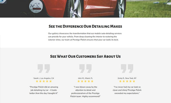 When vehicle owners search for professional detailing, they want proof of your expertise — this template delivers exactly that.