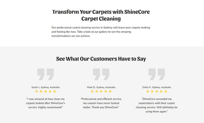 ShineCore is engineered to put your carpet cleaning business at the top of local search results — no coding skills required. Its professional layout and SEO-friendly structure will boost your visibility and help you attract even more customers in your service area.