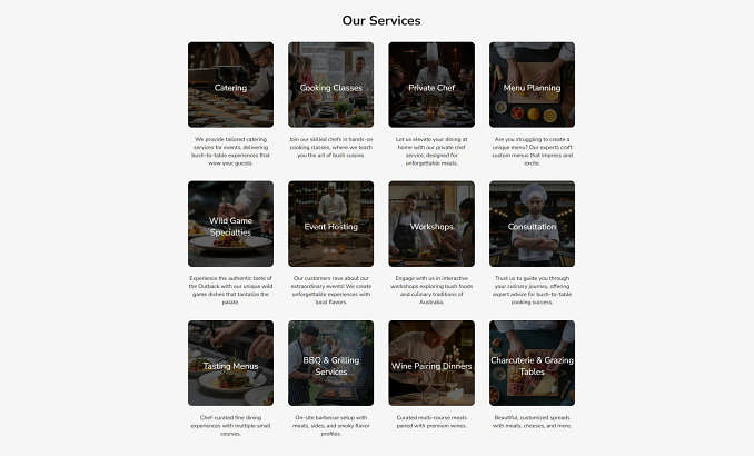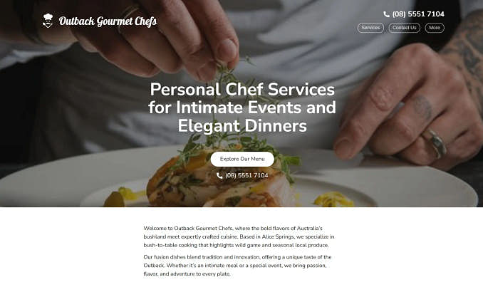 You’ve got bold flavors — your website should match. This template uses rich visuals and structured sections to help clients feel the energy of your kitchen before they ever call. It’s especially useful for chefs catering private events, where trust and first impressions go a long way.