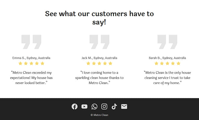 When people in your community search for cleaning services, YOU should be the business they find — and the team they trust enough to call. This website template helps you rank higher in search results with built-in SEO, and capture new leads around the clock with an instant contact form and tap-to-dial phone number.