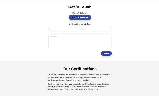In short, when visitors land on your site, they'll find everything they need — including your service area, certifications, and contact information — so they can trust you with their home and keep coming back.