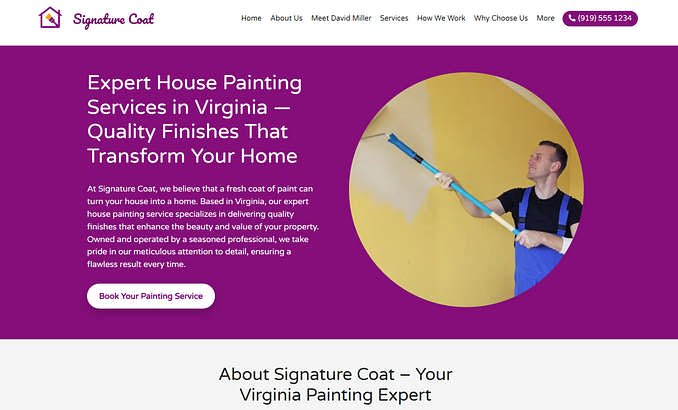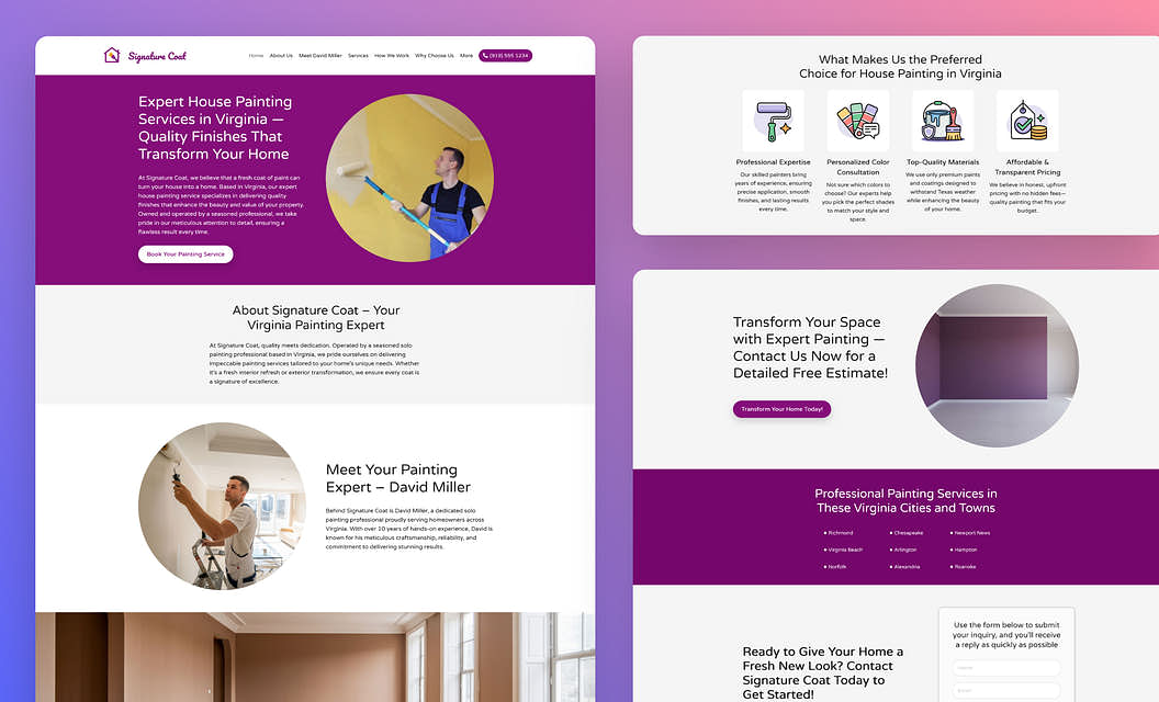 Looking for a site that reflects your attention to detail and personal touch? This template delivers exactly that—with soft gradients, thoughtful layouts, and a warm color palette that instantly feels inviting. It’s ideal for solo painters or small operations who want to spotlight craftsmanship without overwhelming visitors with clutter.