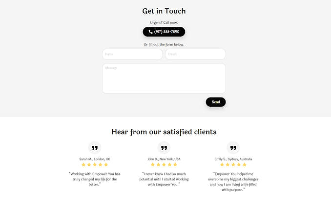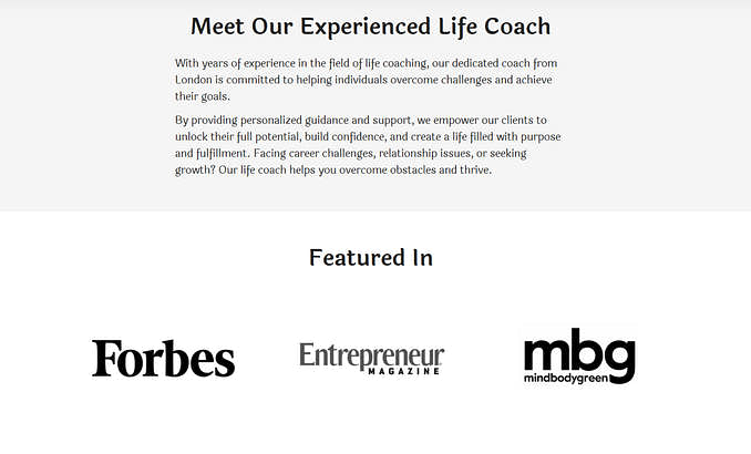 Adding your own client testimonials with star ratings is recommended to help build trust, and you can also connect your social media so visitors can follow you on other platforms for deeper engagement. Our high-quality images are included at no extra cost to reinforce your coaching process and help potential clients envision the results they want.