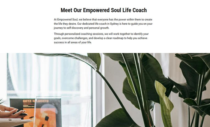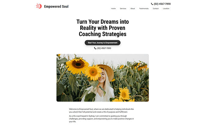 "Your coaching journey starts here. With a clean, easy-to-use website template, your message will instantly connect with potential clients."