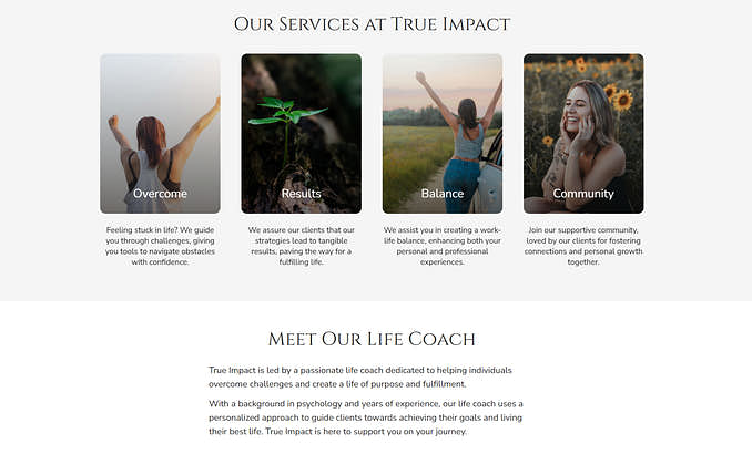 Get your virtual life coaching business in front of the right audience — no tech skills required. True Impact has great SEO features that will boost your online visibility, making it easy for your ideal clients to find and connect with you.