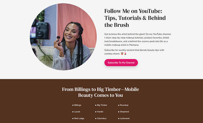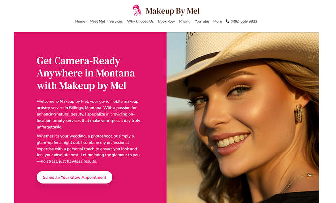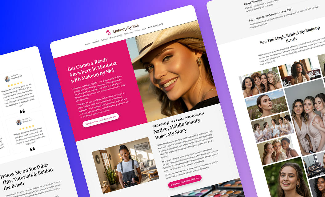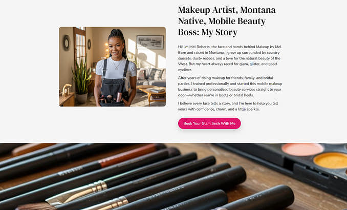 If your makeup business moves fast, you need a website that can keep up — and this bright, confident template was made for mobile makeup artists like you. With bold color accents, striking imagery, and a friendly, approachable layout, the design captures attention immediately and builds instant trust.