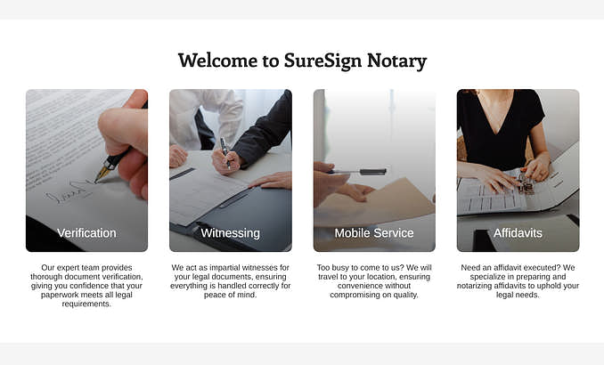 This website template keeps on working while you're out meeting clients. It's designed to show visitors exactly what you do, with photos that highlight your specialties from witnessing to affidavits. And once you add a few glowing reviews your visitors will see just how hard you work for your clients.