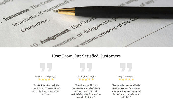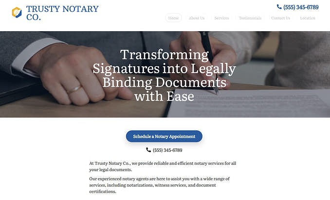 Get started today and watch as your notary practice becomes a top business service in your area. With quick load times and an intuitive booking process, your site works around the clock to bring you qualified leads while you focus on serving clients.