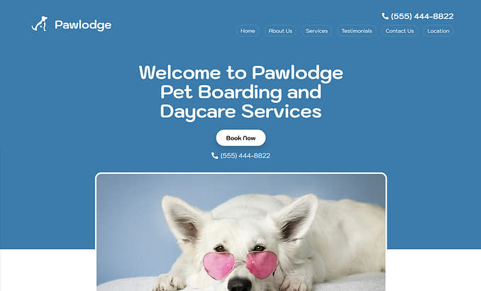 Your pet kennel's compassion should shine through from the first click, and this template helps you do just that. You can put heartwarming photos of your facility with your four-legged guests front and center, add testimonials from happy pet owners, and show every aspect of your busy day from morning play sessions to cozy evening routines.