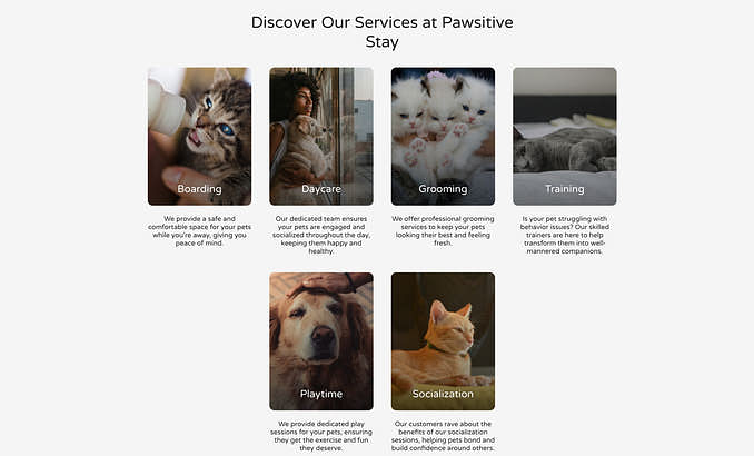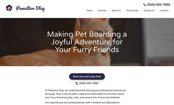 Easily publish an online presence that mirrors the warmth of your facility. With our free, customizable design you can add your boarding services, daily activities, and client experiences with just a few clicks.