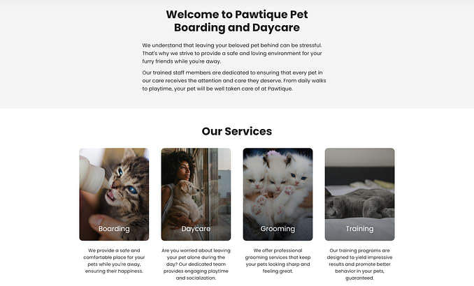 "Attract more high-end clients with Pawtique's sleek, professional design. Your business is already the top choice for pet care in your area — now your website will look the part."