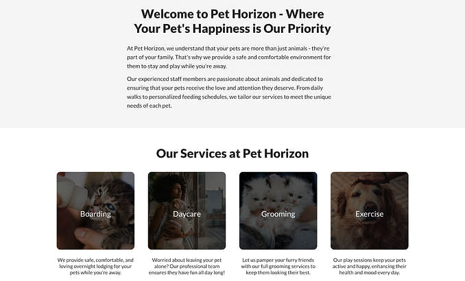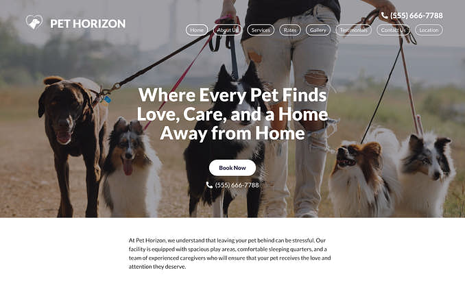 "A gorgeous full-width image always makes a statement. This is what makes your pet boarding business stick in people's minds."