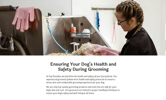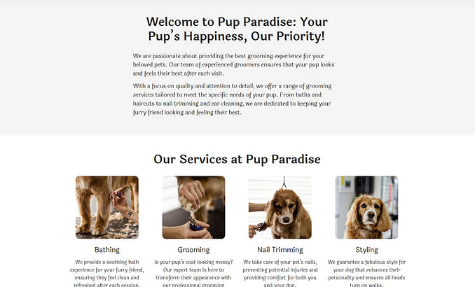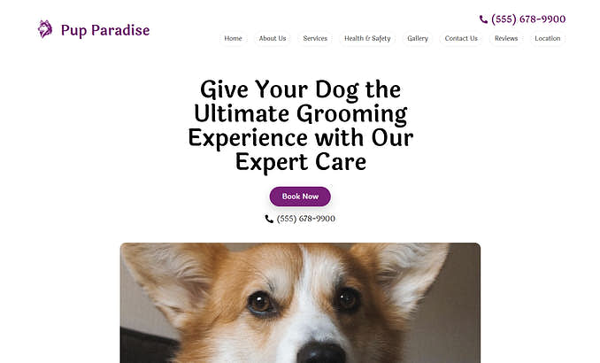 A prominently displayed phone number ensures pet owners can reach you, while the location map provides clear directions, making it easy to find your salon. Plus, the contact form offers another uncomplicated way for visitors to ask questions or even schedule an appointment.