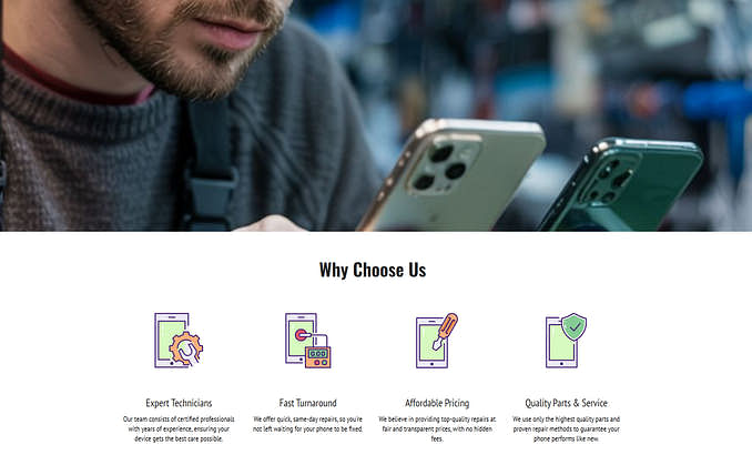 "Visitors know exactly what to do the moment they land — call, book, or drop in. The simple design keeps things focused on what really matters: more repairs, less bounce."
