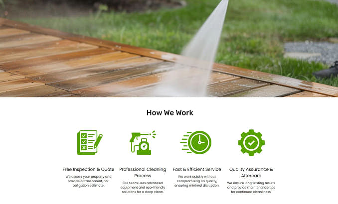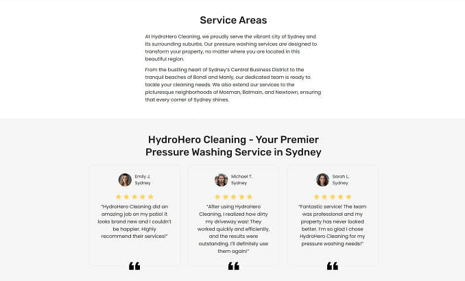 "This layout feels trustworthy, and you don’t have to touch a line of code. Add your service area and pricing in just a few clicks with Zarla’s editor."