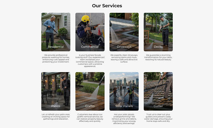 You can customize the layout to highlight detailed success stories or create a gallery of past projects, giving potential clients more reasons to choose you. It’s a quiet way to stand out — especially when people are comparing local pressure washing services.