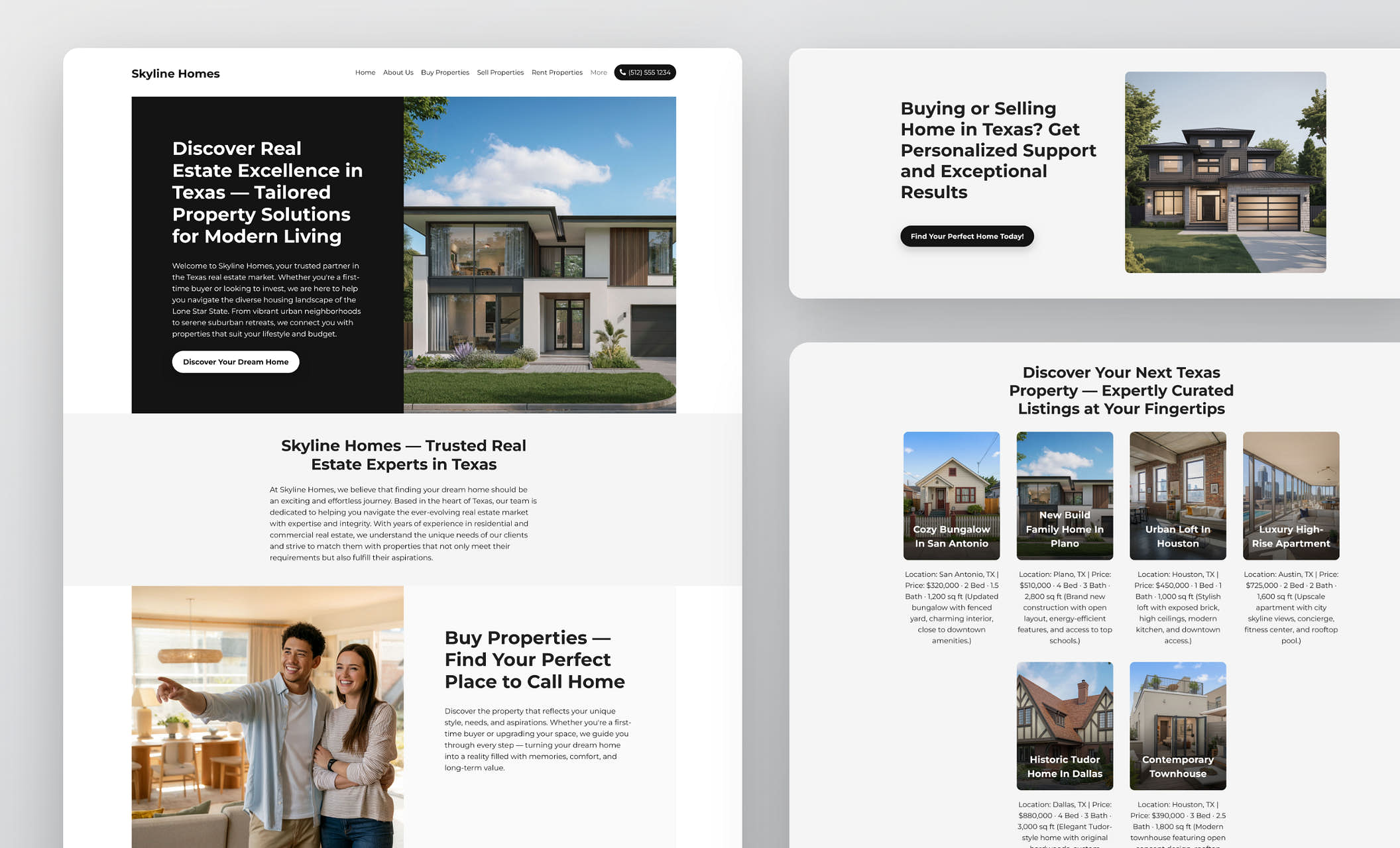 Want more people to trust your agency before you even speak to them? This site layout combines bold, full-width design with real photos of Texas properties and a smooth mobile experience, helping visitors imagine life in one of your homes — and reach out faster.