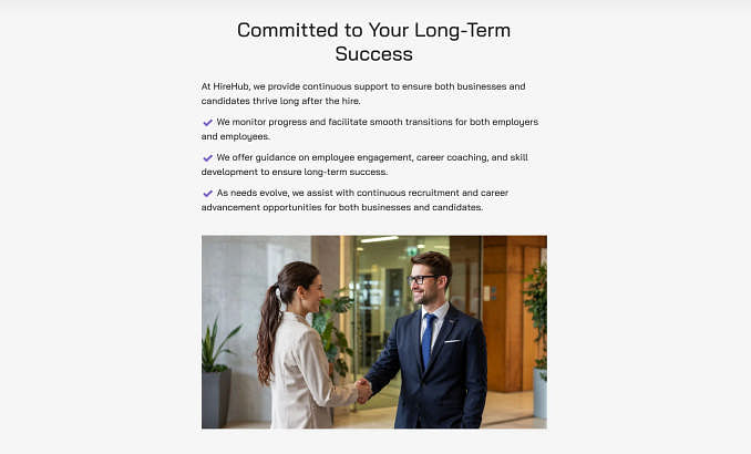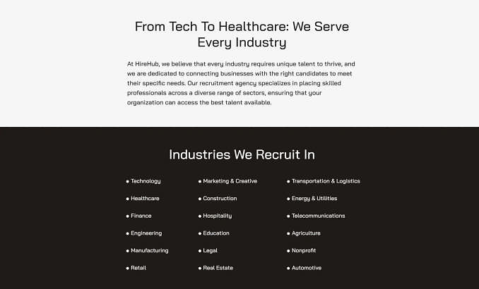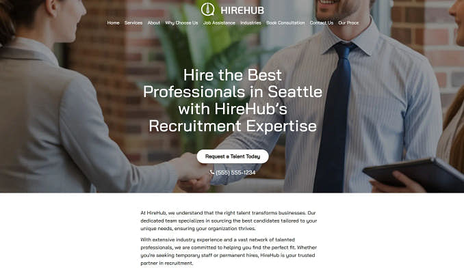 Mobile-friendly and SEO-ready, this layout helps you capture leads wherever they are. And because it’s customizable, you can tailor it to fit your recruitment agency perfectly. Showcase your expertise, build trust, and make it easy for clients to connect — all in one place.