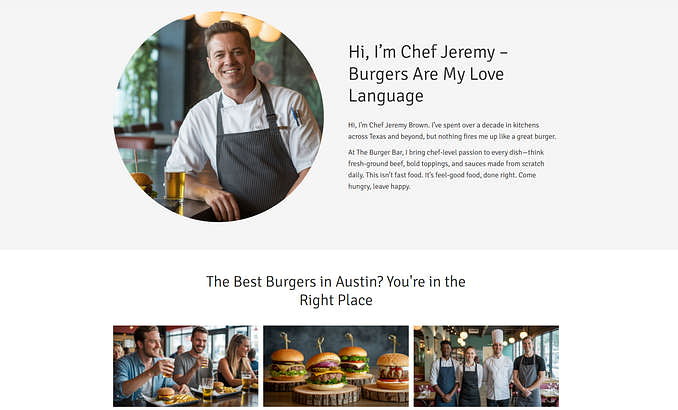 The layout includes space to share your burger lineup, spotlight your chef, and even answer FAQs about allergens, gluten-free options, or parking. Built-in SEO helps boost your local reach, and the AI-powered editing dashboard makes it simple to swap out specials or add seasonal updates. For restaurants where comfort meets crave-worthy, this site does the job and then some.