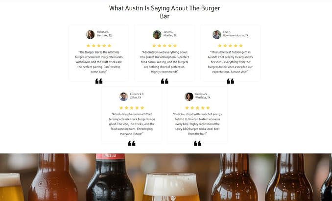 “This site is fun, bold, and super easy to set up. It gives your menu personality and helps guests find exactly what they need — from burgers to bookings — in just a few clicks.”