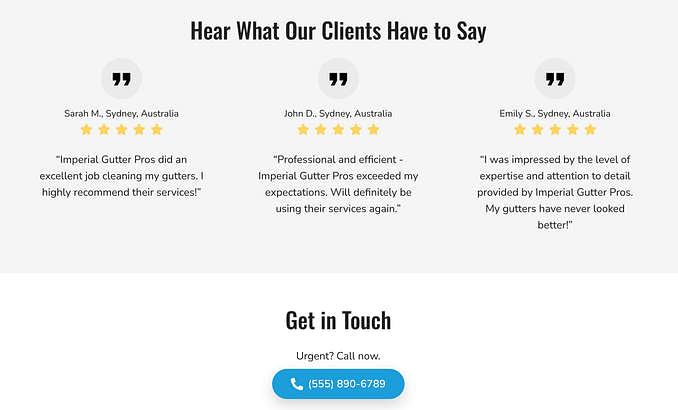 Trust is everything with home owners, and this template helps you build it easily. Add glowing testimonials to reassure potential clients, and keep your service details sharp with high-quality images that look great on any device. Plus, with robust SEO features, your business is simple to find when property owners search for gutter cleaning services in your area.
