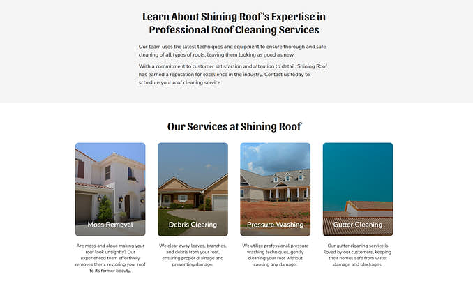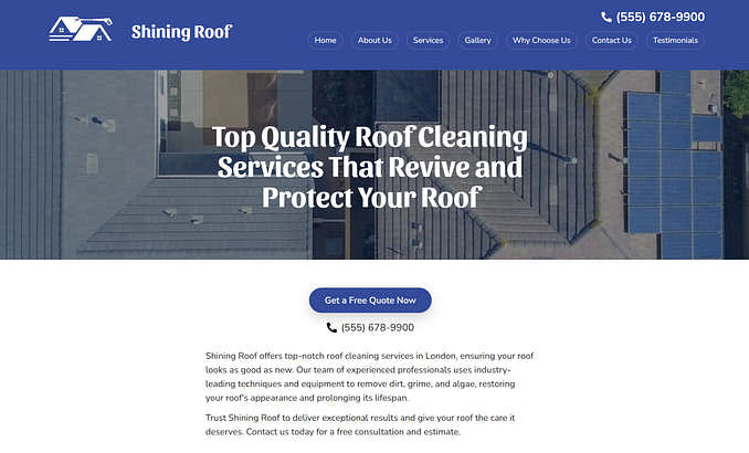 Give your roof cleaning business a professional look with this easy-to-use template. Color might be the least of your concerns, but the blue and gray accents feel stable, trustworthy, and reliability—qualities that put visitors at ease.