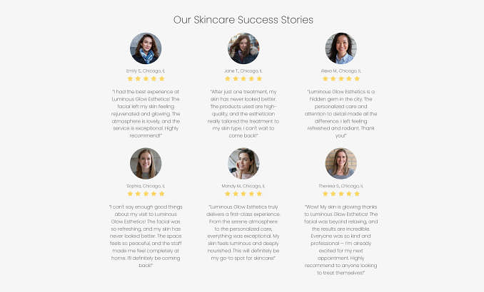 Draw clients in with a soothing, nature-inspired design that feels like a breath of fresh air. The full-width layout showcases your high-res treatment photos, letting visitors experience your calming services. Share client testimonials to build trust and show new clients why they love your services.