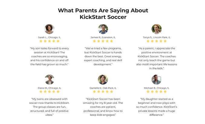 "The real testimonials with star icons can make a big difference. You can move them to the top with Zarla’s editor — and see leads pick up fast."