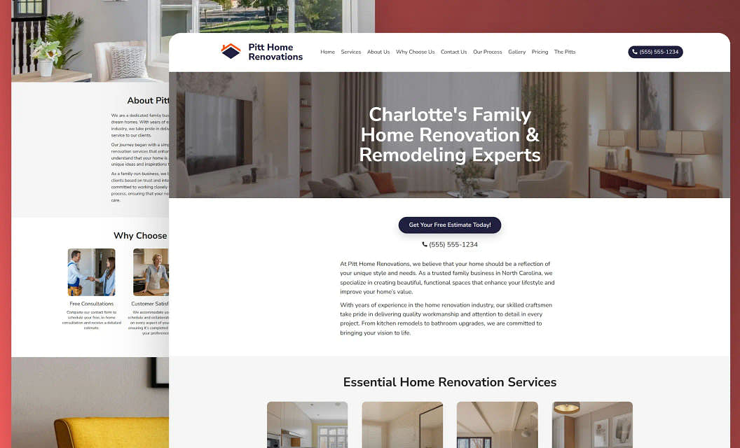 Pitt Home Renovations: Turn houses into dream homes with a website that puts customers at ease. It’s all here — an eye-catching design, SEO-friendly features, and an easy way for potential clients to request a free estimate.