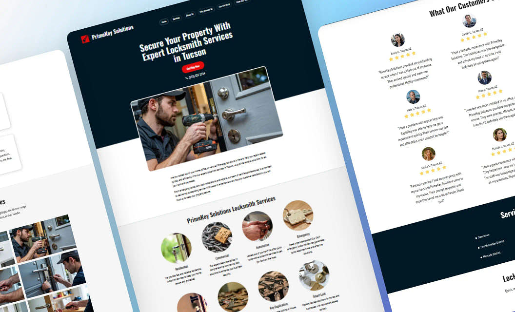 PrimeFix Plumbers: A strong website should guide visitors to take action, and this template makes it easy. The clean layout highlights your services, while prominent tap-to-call buttons ensure people can connect with you instantly. They won't just browse — they'll schedule.