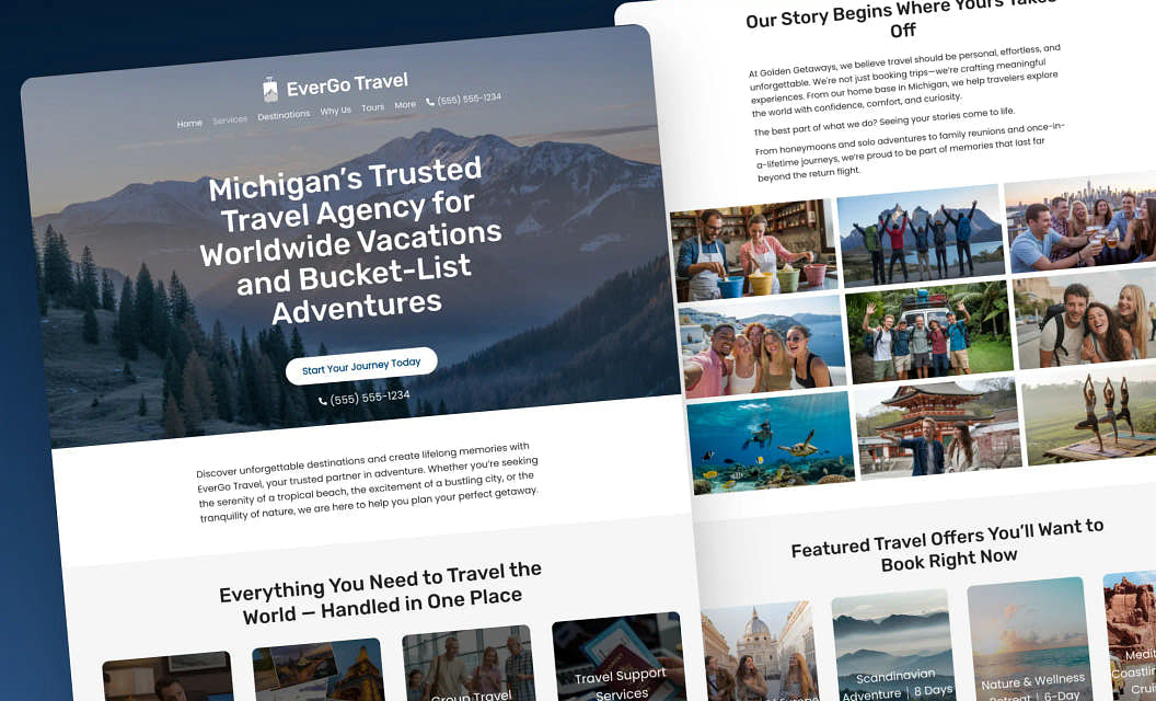 EverGo Travel: If your travel business is all about ease and joy, your website should reflect that. With a responsive layout, clear destination sections, and bold call-to-action buttons, this template is built for clarity and connection.