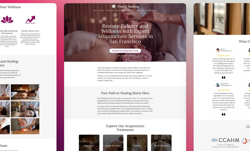 AcuPath Wellness: Show clients your expertise with a template that feels warm and inviting. They can reach out instantly, explore your treatments, and get to know your services at first glance.