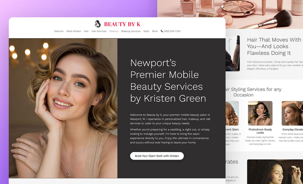 Beauty by K: A good mobile beauty website makes it easy for people to find you, trust you, and book you — and this one checks all three. Strong visuals, smart sections, and mobile-friendly forms let you show off your specialties without over-explaining.