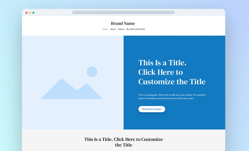Blank Website Template 6: This template's setup brings your best visuals forward without crowding the page. It’s a smooth way to guide people toward the “Get Started” button while reinforcing trust with a calm, modern layout.