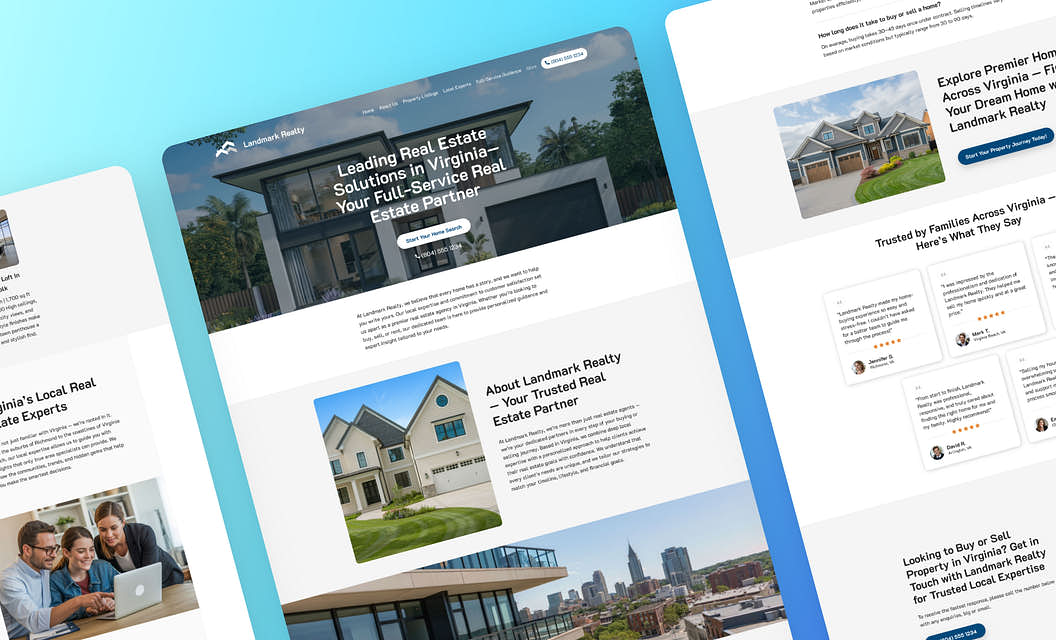Landmark Realty: Good leads are only good if they convert — this website layout guides every visitor to get in touch. The full-width hero, clean scroll experience, and mobile contact tools work together to help you turn casual interest into real appointments.
