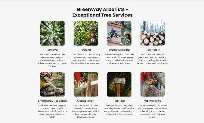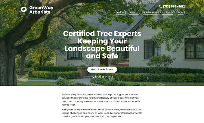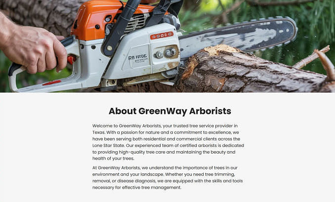 The responsive layout works on any screen, so even folks browsing from the backyard can find what they need. You can drop in a location map, highlight your service area, or add a seasonal promo — no code required. It’s built to help you stay focused on tree work, while still presenting a sharp, professional image online.