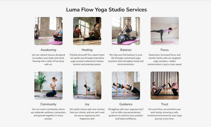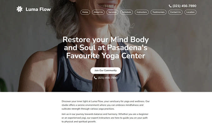 It’s easy to customize, too. Add your own images or use the sample ones that already fit right in. The multi-section setup gives you room to share your story, while the built-in SEO support helps you show up when people in your area search for yoga. It’s clean, personal, and easy to update anytime.