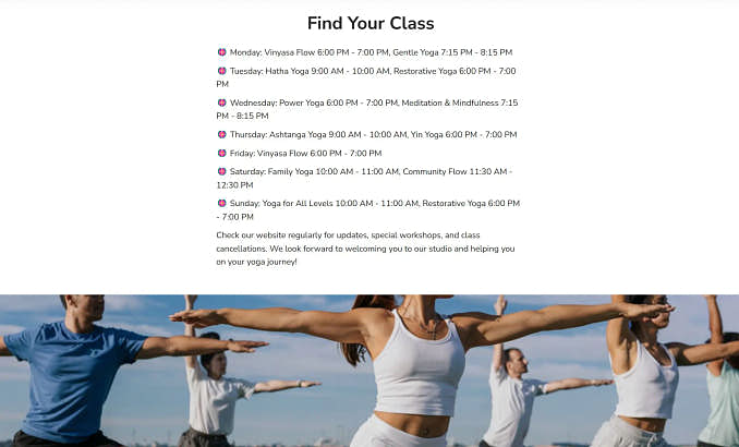 If you want your yoga studio website to reflect your vibe, this template keeps things warm and grounded. The layout feels human, not polished for a corporation — ideal for showing off your classes, pricing, or philosophy in a way that builds trust naturally.