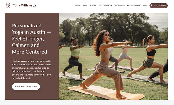 “This template feels grounded and warm, like a deep breath outdoors. It’s clean, approachable, and makes it easy for new students to trust you and book right away.”