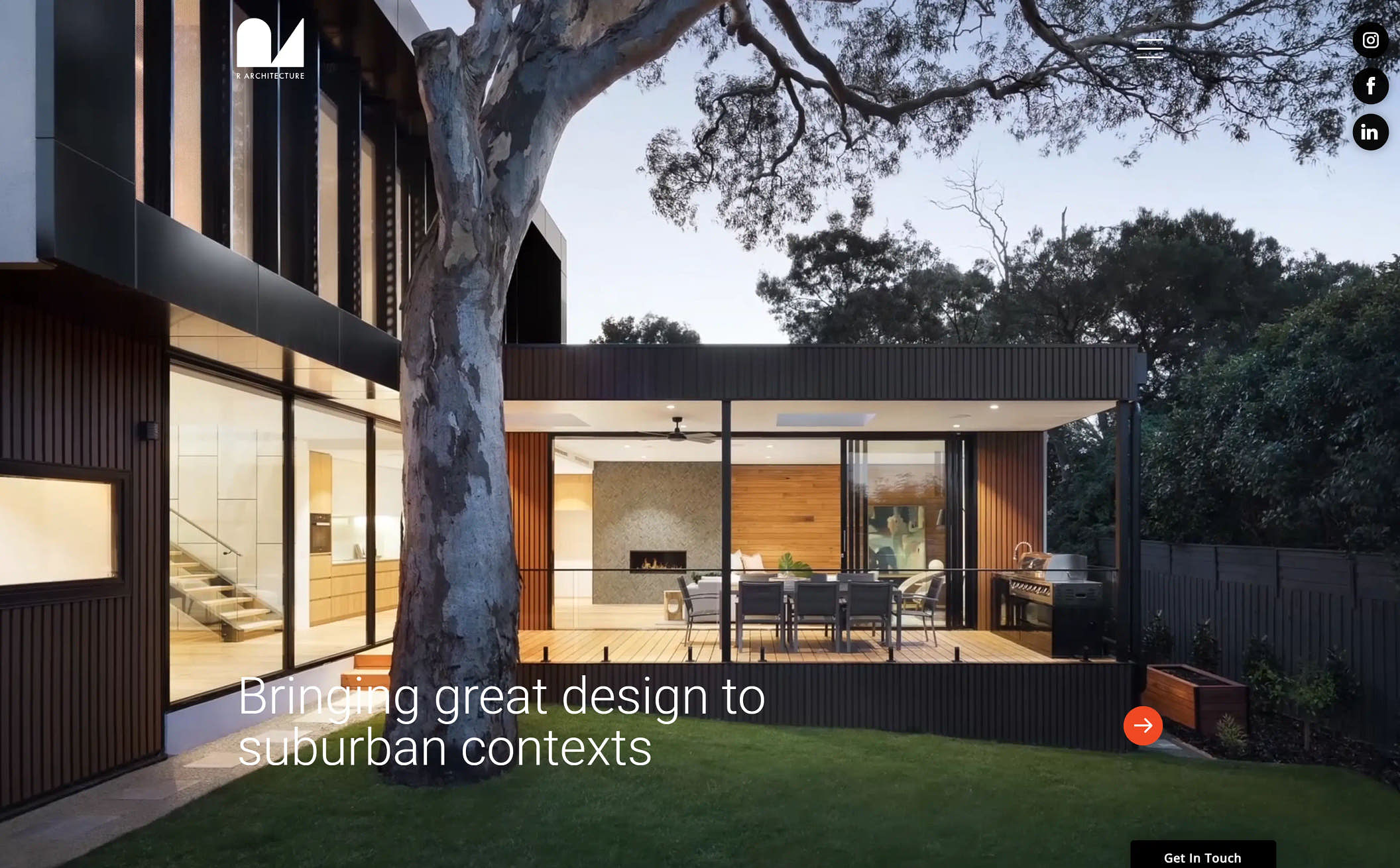 R Architecture is an architecture and design practice that specializes in commercial and suburban-based projects. The website's home page caught my attention with its sparse appearance, primarily acting as a portfolio for the company with lots of visual interest with a slideshow of project images. I also enjoyed the touches of color in the hamburger menu and navigation buttons to draw the eye to certain elements.