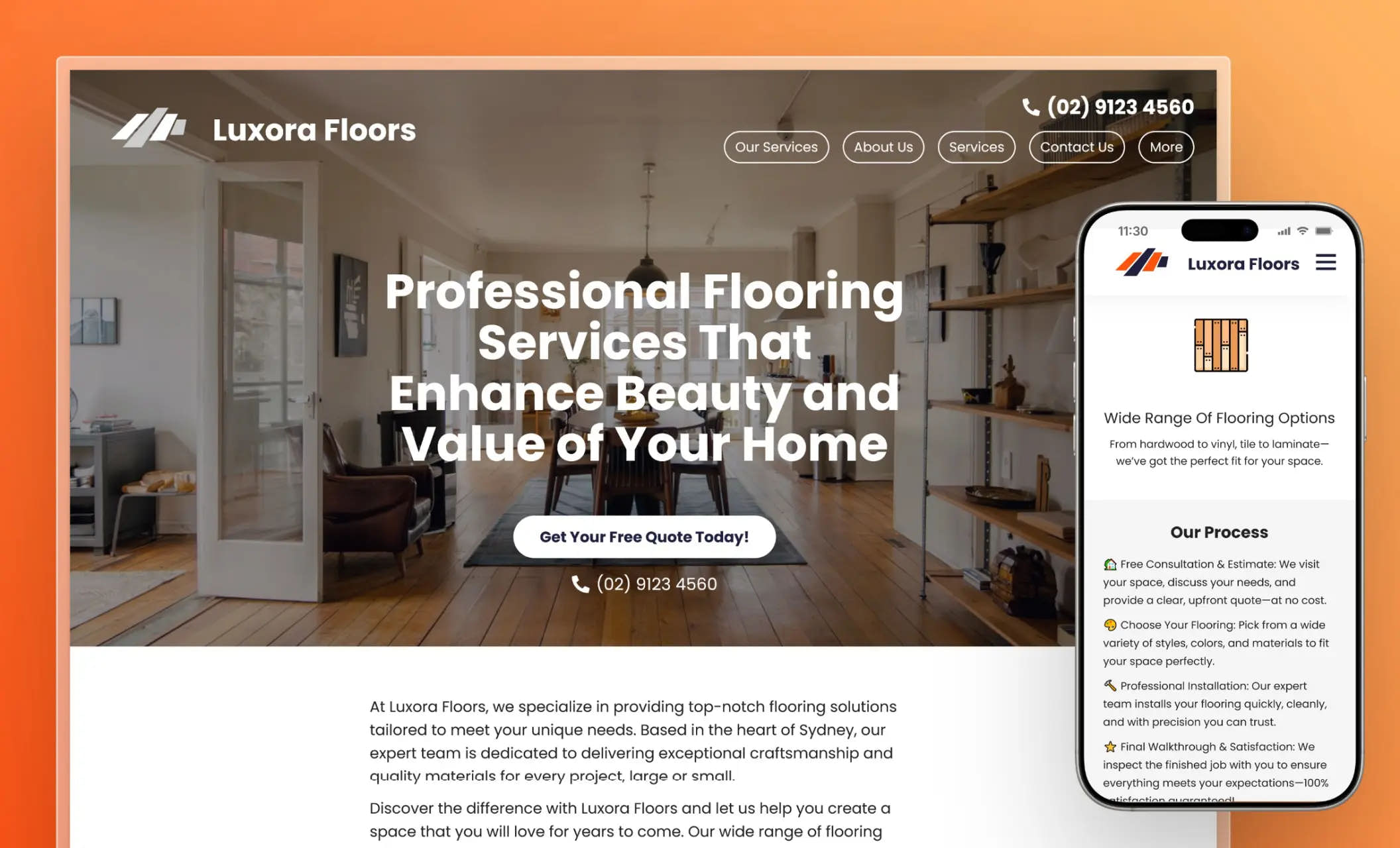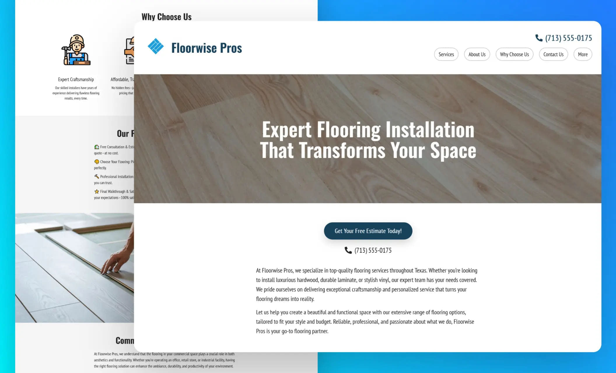 Create a professional flooring website instantly with smart AI templates. Comes with SEO, blazing-fast pages, and free hosting.